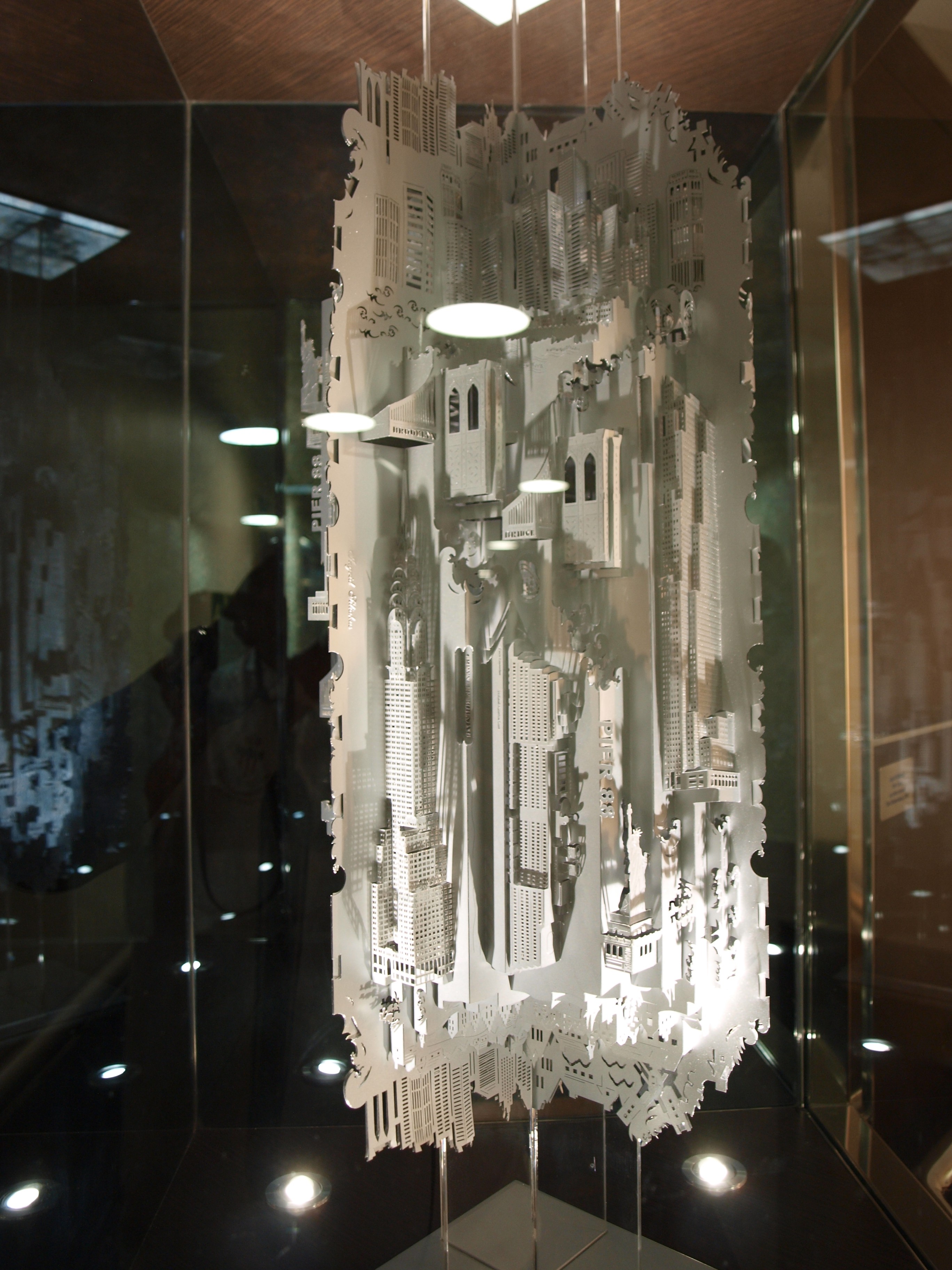 Een impressie van de werken zoals deze geplaatst zijn op de boot van de Holland Amerika Lijn, namelijk op de "Nieuw Amsterdam". De foto's zijn niet erg scherp en donker en geeft dus slechts een indruk.
